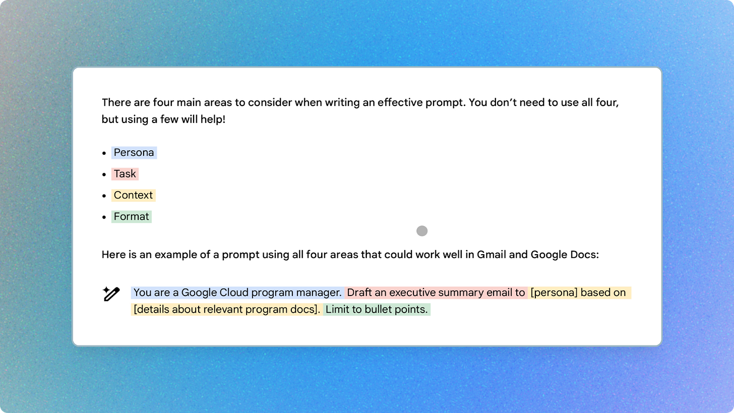 All you need is to write a very detailed prompt telling Gemini the context of the problem you need help with and the criteria of the desired outcome. According to Google’s prompting guide, you will need to include these in your prompt: